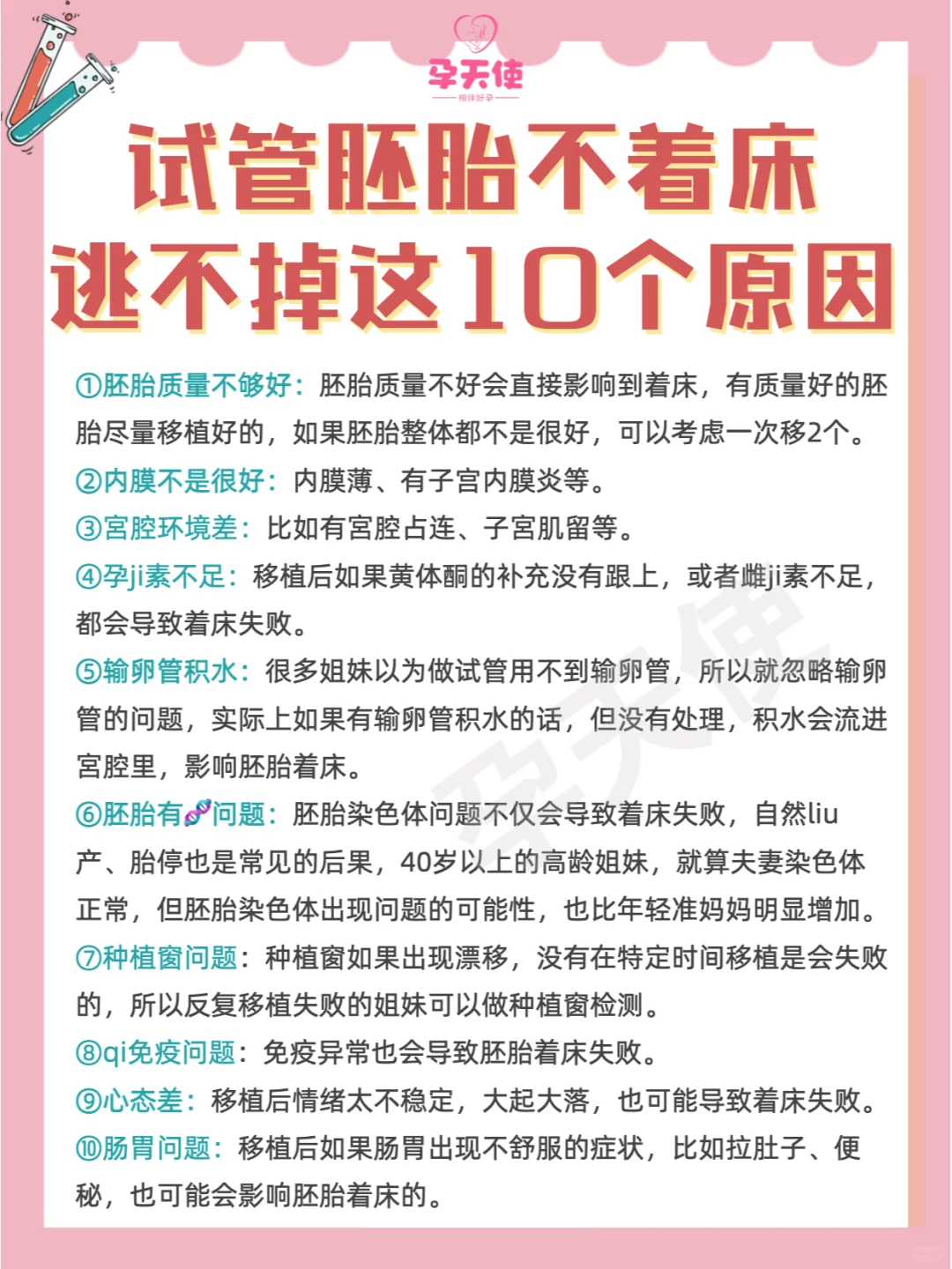 如果不找出不着床的原因,那么下次还是有可能失败,今天我们分析一下,试管婴儿不着床,一共有哪些原因,大家可以对比下自己的情况,看看哪种可能性高: