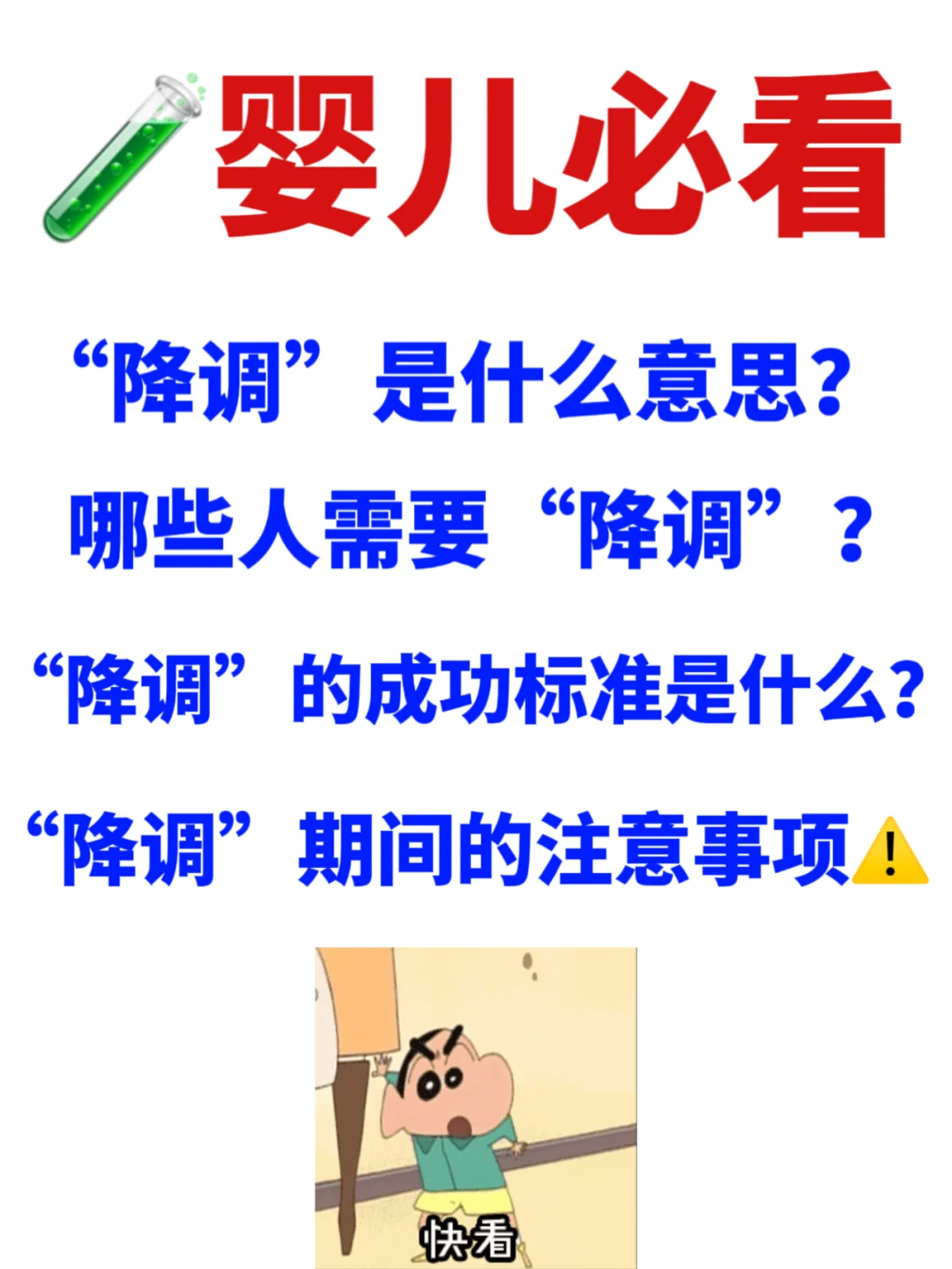 降调指在做🧪婴儿促排卵前的一种治疗。降调以后能够快速的获取足够量的卵子🌟这样既能够保证卵子的质量💯还能够提高胚胎的质量。降调以后,再通过使用一些促进排卵的针以及💊物可以使卵巢有更多的营养也可以让每个卵泡更均匀茁壮的成长💯 ✅1.降调是什么意思?✅2.哪些人需要降调?✅3.降调的成功标准是什么✅4.🧪...